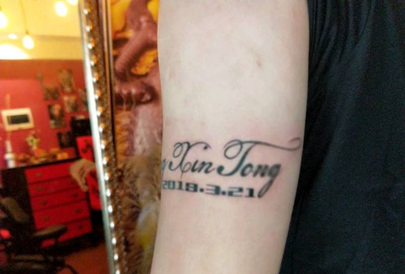 当前位置: 首页 >安徽省蚌埠市纹身店-画皮纹身舍 刺青工作室纹身图案>初为人父的喜悦纹身图片_手臂花体字纹身图案