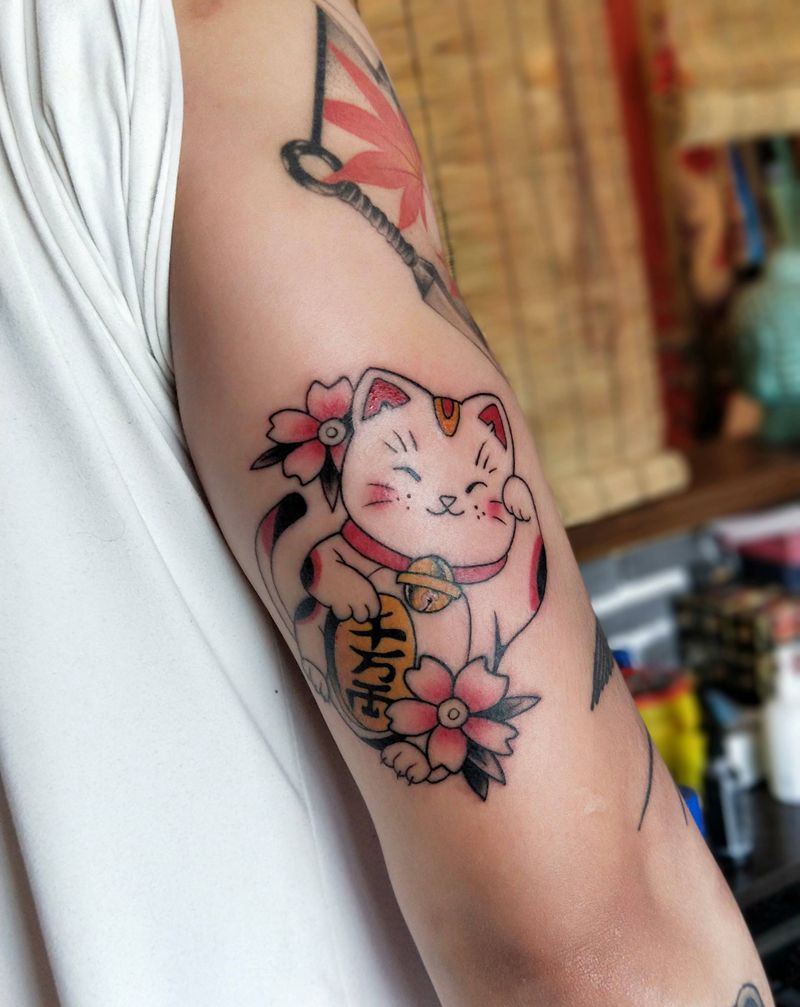 招财猫纹身图片_手臂老传统纹身图案