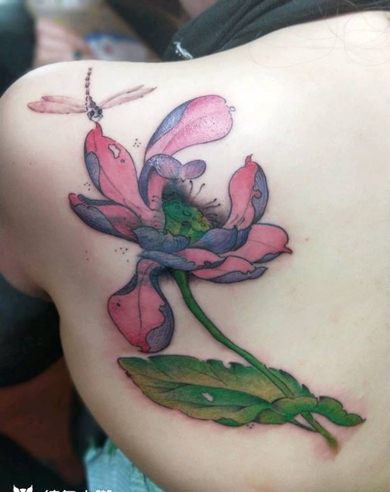 出淤泥而不染~莲(遮盖旧纹身)纹身图片_背部传统植物原创纹身图案