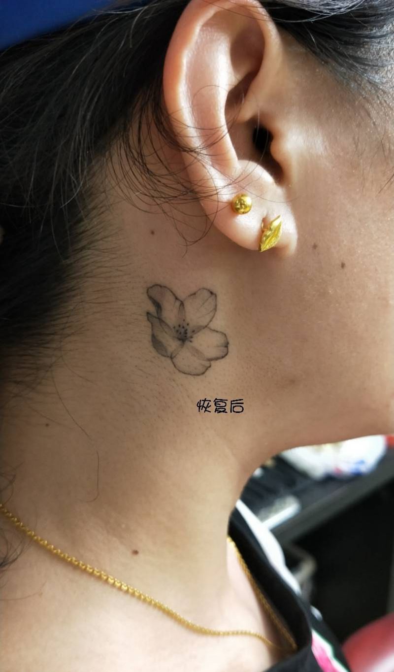 当前位置: 首页 >安徽省蚌埠市纹身店-画皮纹身舍 刺青工作室纹身图案>很小一朵纹身图片_颈部清新手稿纹身图案