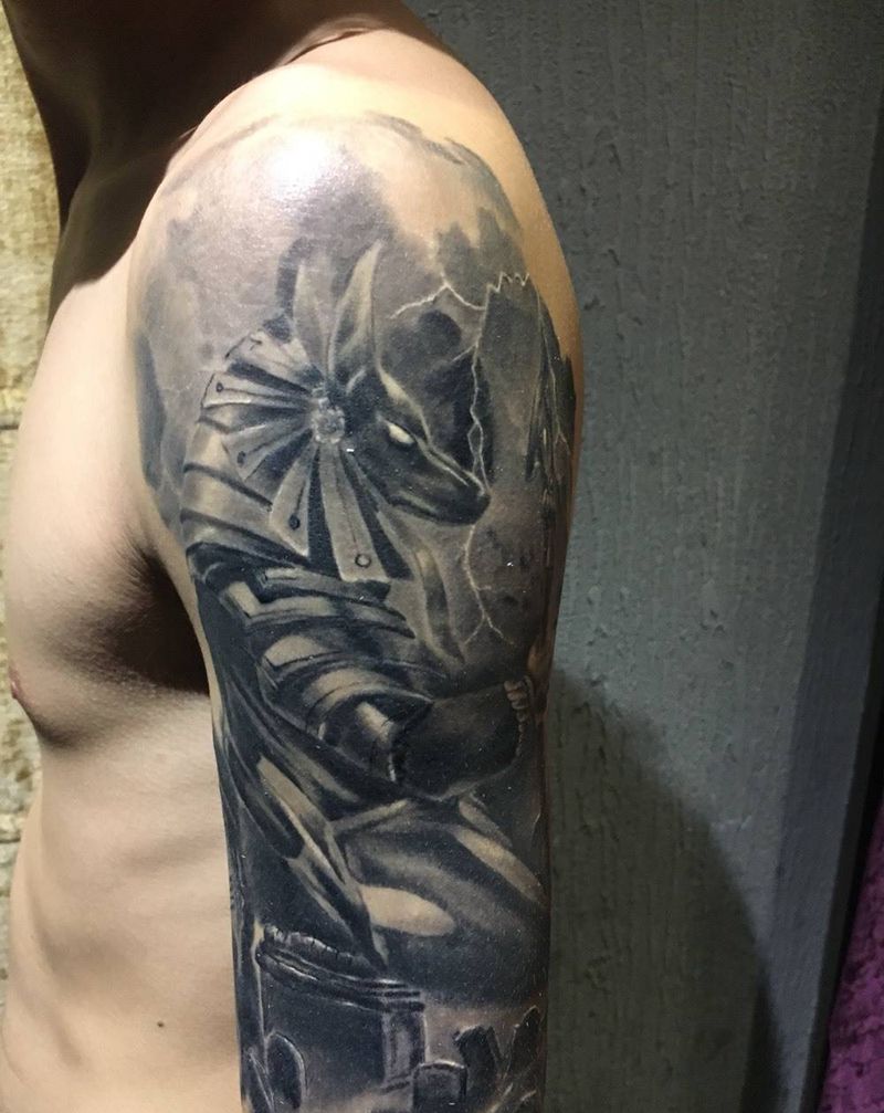当前位置: 首页 >安徽省芜湖市纹身店-轩辕之道刺青纹身图案>阿努比斯纹身图片_手臂欧美写实神话人物纹身图案