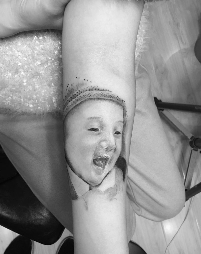 当前位置: 首页 >安徽省芜湖市纹身店-轩辕之道刺青纹身图案>人物纹身图片_手臂手部欧美写实宝宝人物小孩纹身图案