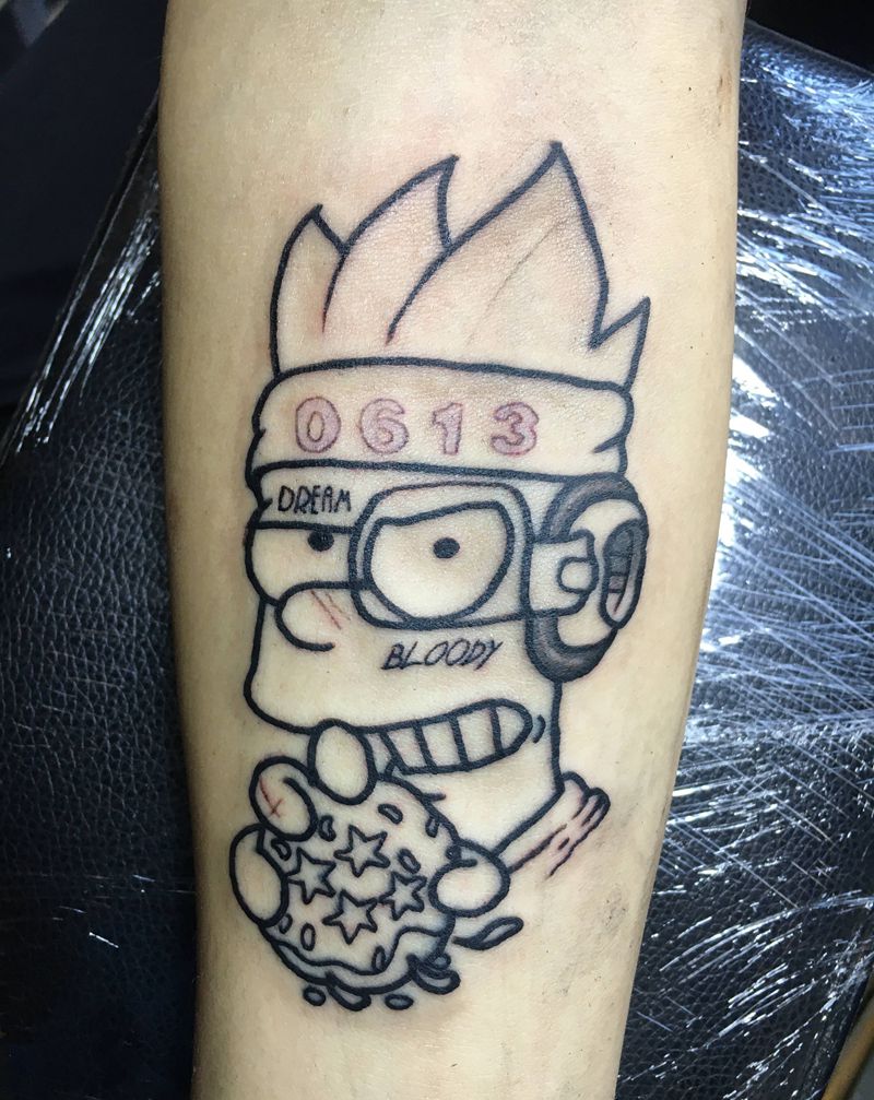 当前位置: 首页 >安徽省芜湖市纹身店-轩辕之道刺青纹身图案>辛普森一家纹身图片_手臂手部New SchoolOld School动漫辛普森彩色纹身图案