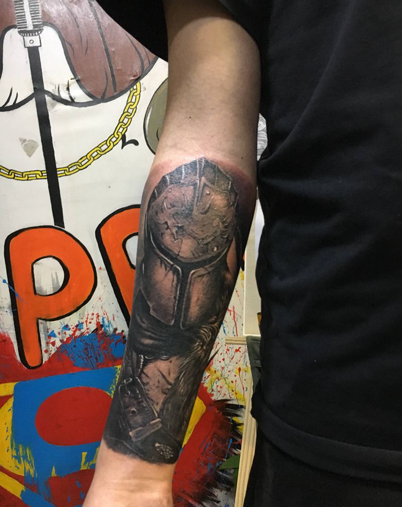 当前位置: 首页 >安徽省芜湖市纹身店-轩辕之道刺青纹身图案>铁甲骑士纹身图片_手臂手部欧美写实战士人物写实纹身图案