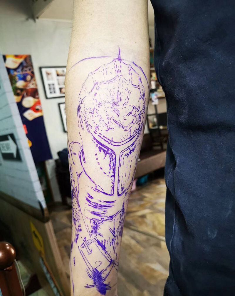 当前位置: 首页 >安徽省芜湖市纹身店-轩辕之道刺青纹身图案>铁甲骑士纹身图片_手臂手部欧美写实战士人物写实纹身图案