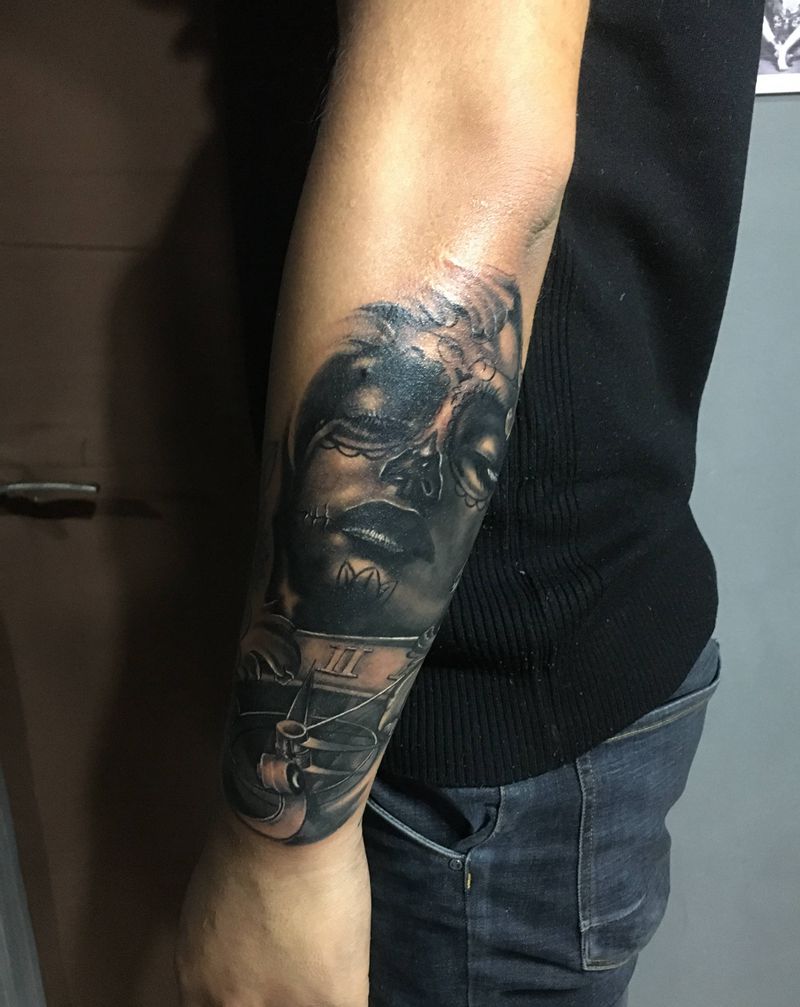 当前位置: 首页 >安徽省芜湖市纹身店-轩辕之道刺青纹身图案>欧美小臂纹身图片_手臂欧美写实人物肖像美女纹身图案
