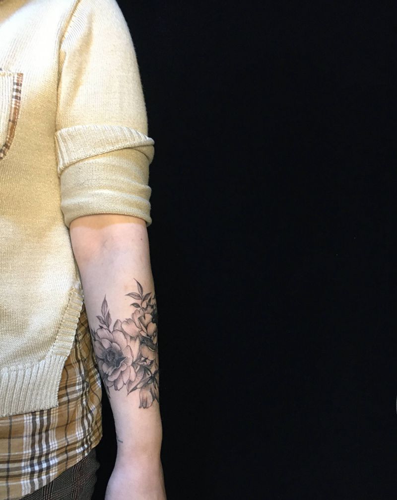 素花纹身图片_手臂点刺素花花小清新纹身图案