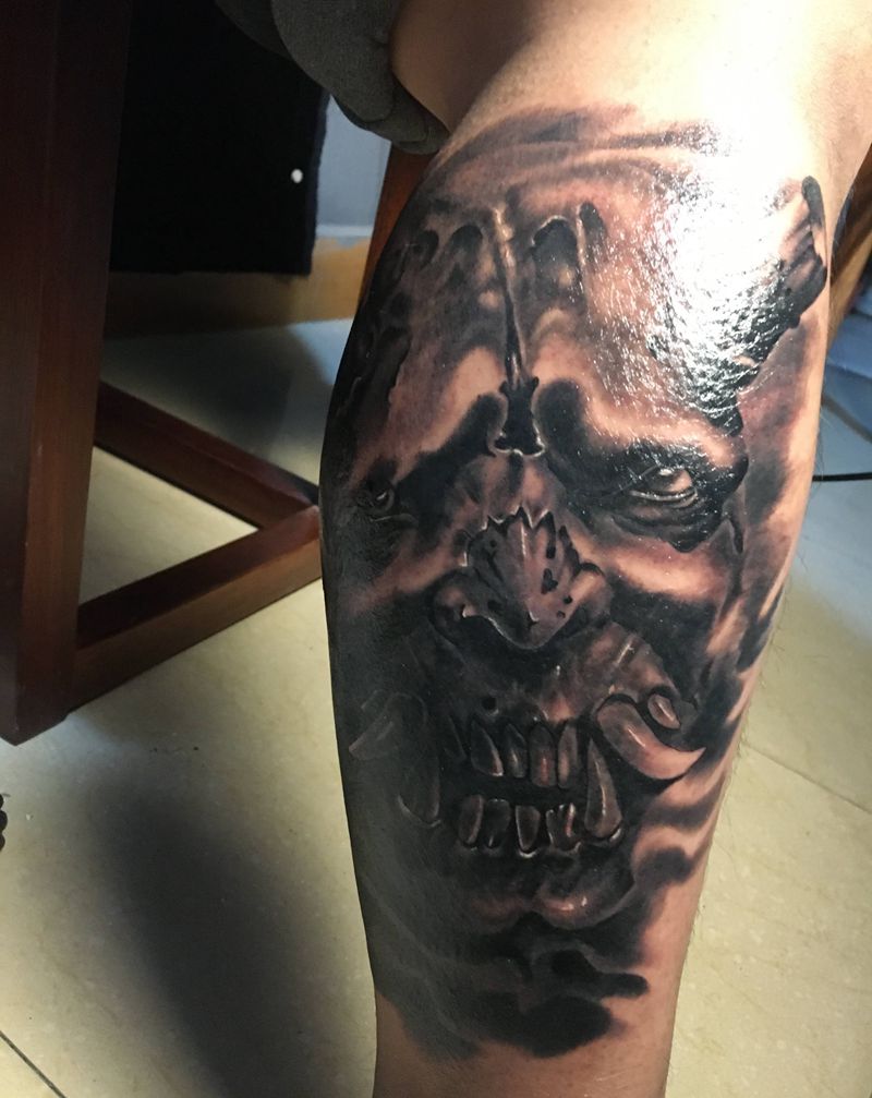 当前位置: 首页 >安徽省芜湖市纹身店-轩辕之道刺青纹身图案>写实般若纹身图片_腿部欧美写实新传统般若小腿纹身图案