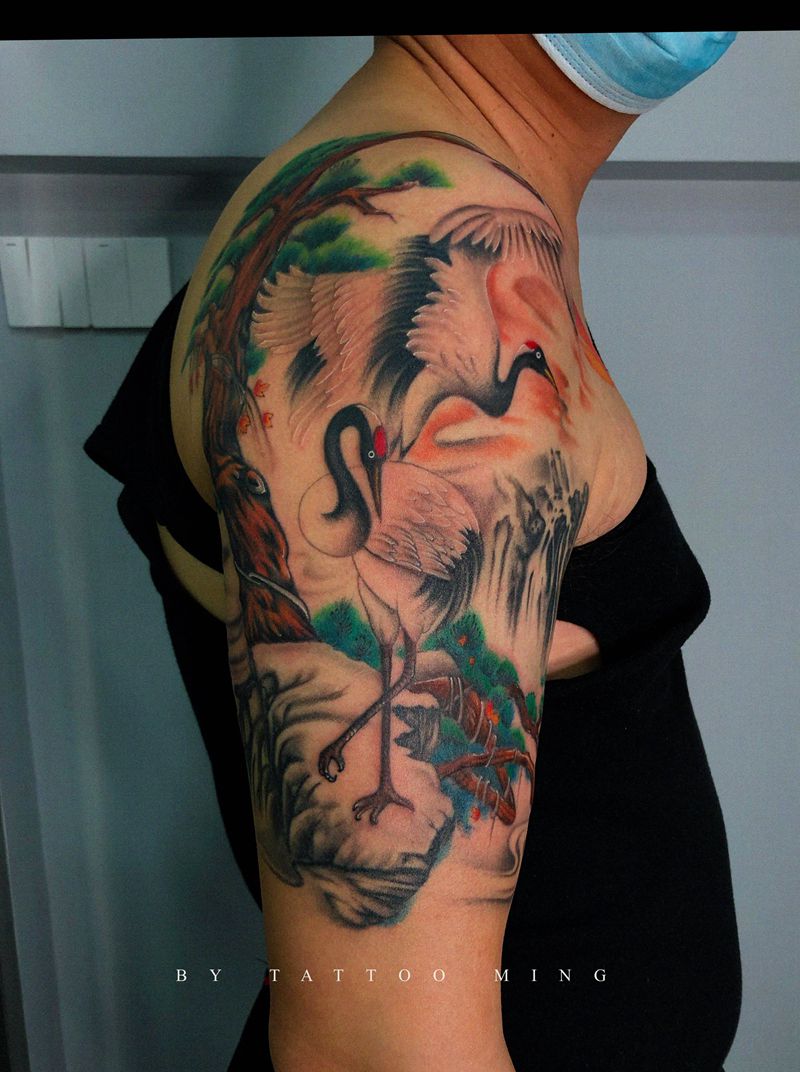当前位置: 首页 >安徽省芜湖市纹身店-芜湖辛玖刺青纹身图案>仙鹤纹身图片_手臂新传统纹身图案