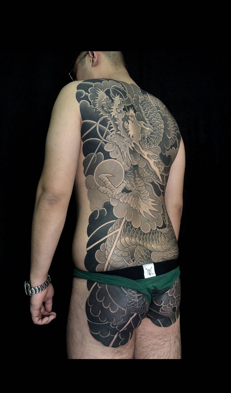 • T云龙九郎纹身图片_背部老传统云龙九郎纹身图案