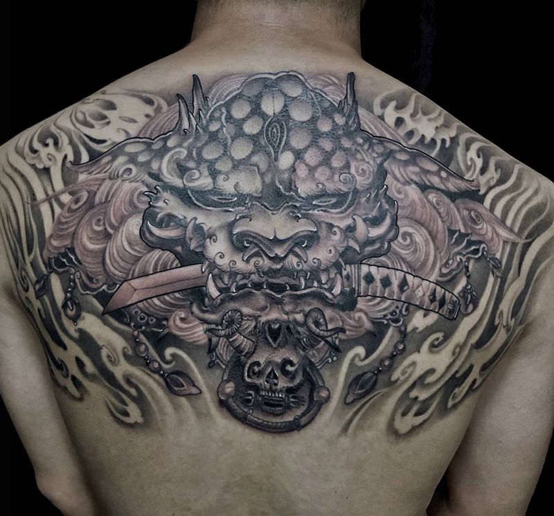 黑灰满背纹身图案
