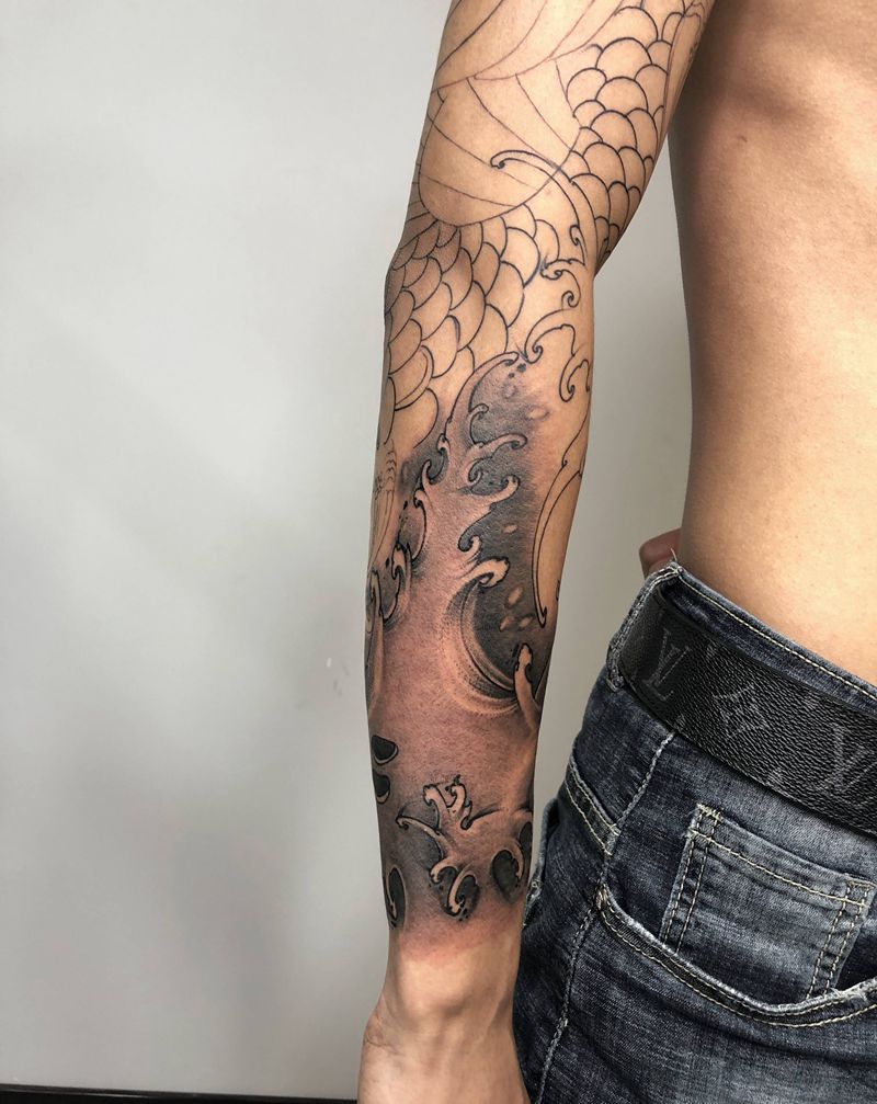 浪花 未完待续纹身图片_手臂新传统纹身图案