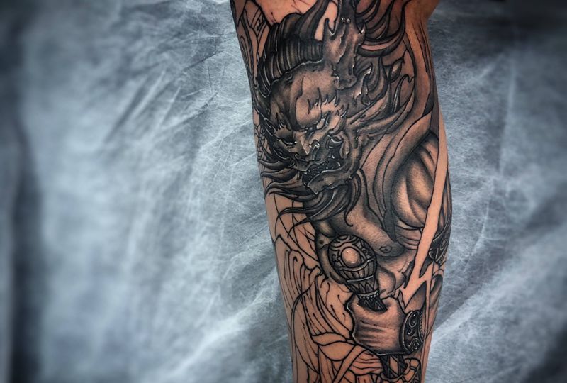 雷神纹身图片_腿部新传统纹身图案