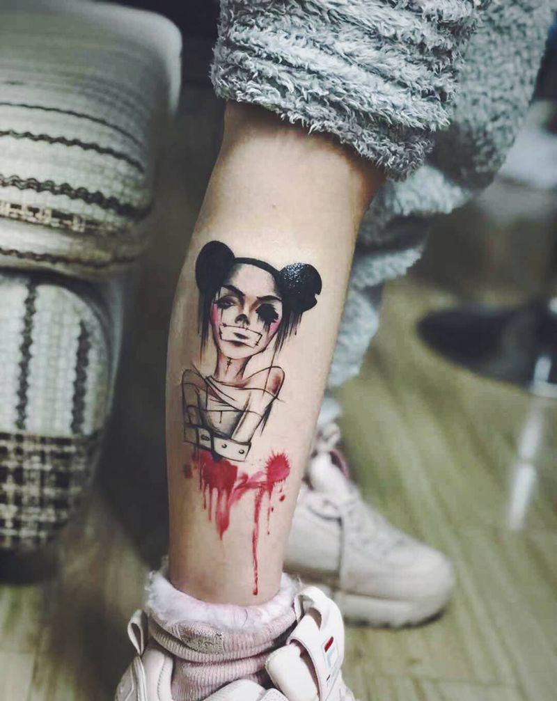 当前位置: 首页 >安徽省芜湖市纹身店-E·TX-Tattoo工作室纹身图案>小丑女纹身图片_腿部纹身图案