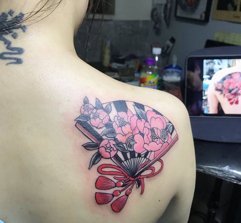 当前位置: 首页 >安徽省芜湖市纹身店-E·TX-Tattoo工作室纹身图案>扇纹身图片_彩色背部纹身图案