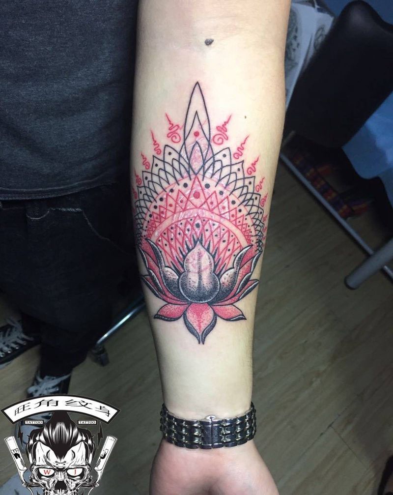 一组15张莲花纹身手