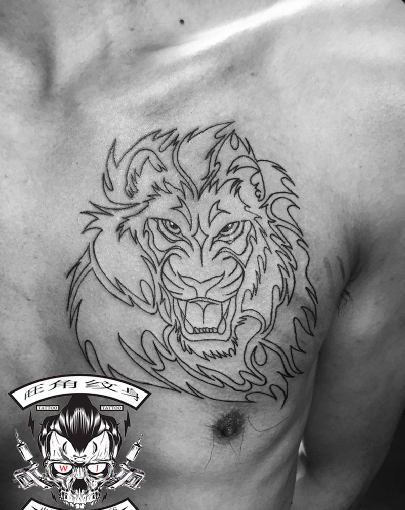 龙虎线条纹身图片
