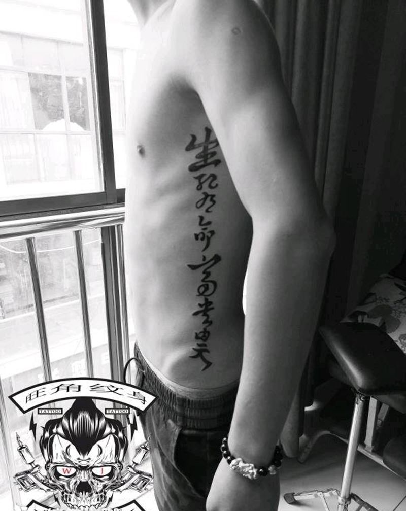 文字纹身图片_腰部纹身图案