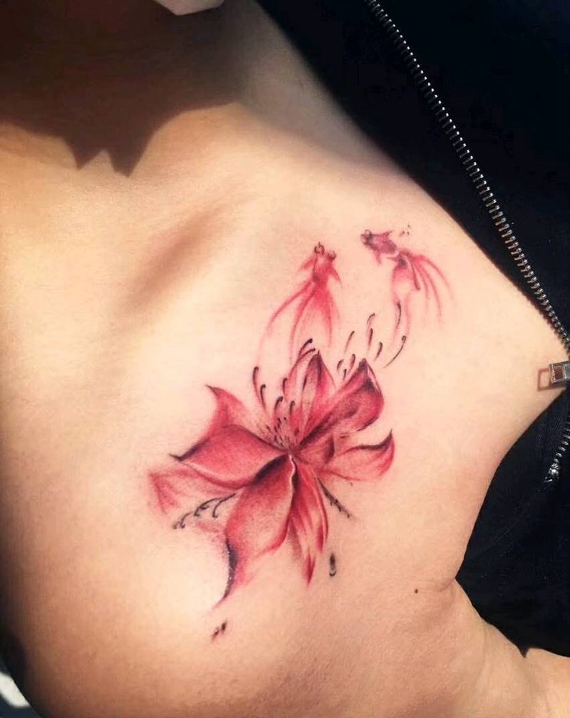 • 女性大花胸纹身_43张霸气漂亮的女性大花胸纹身图案作品