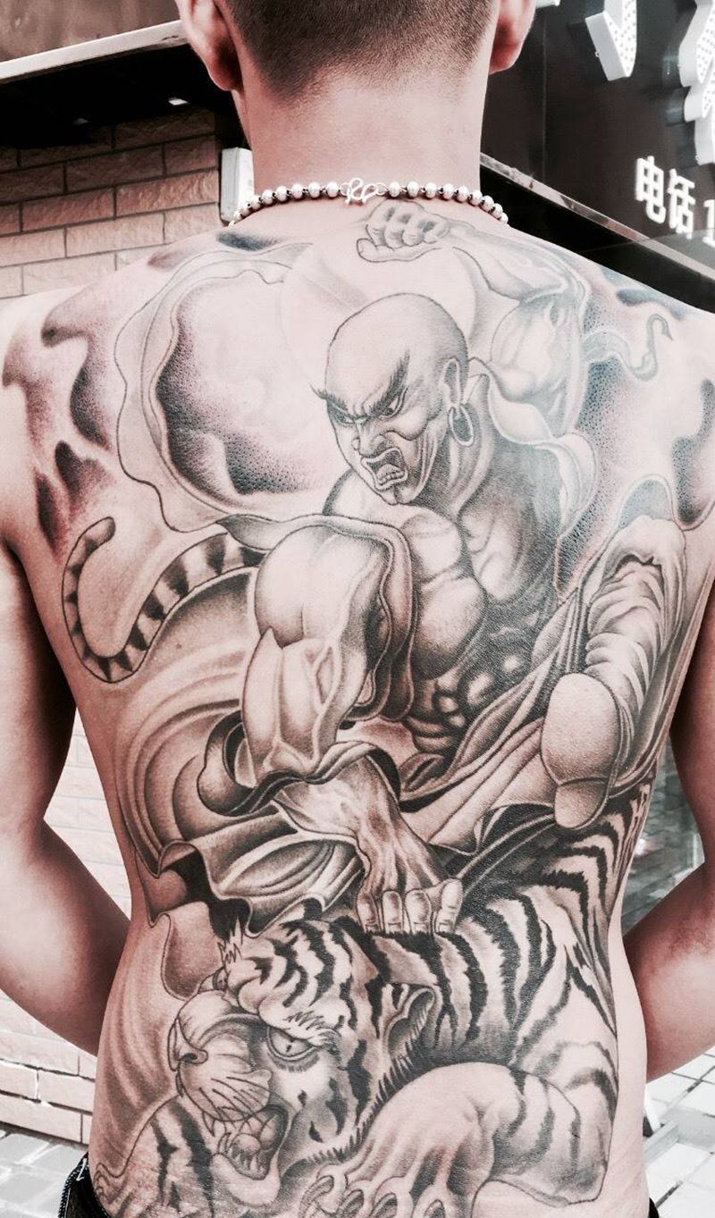 当前位置: 首页 >安徽省淮南市纹身店-名门刺青纹身图案>伏虎罗汉纹身图片_成品背部传统鬼神纹身图案