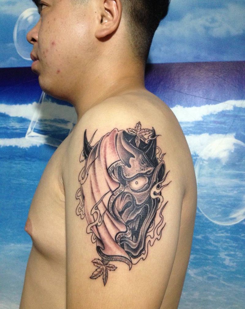 般诺纹身图片_成品手臂传统鬼神纹身图案