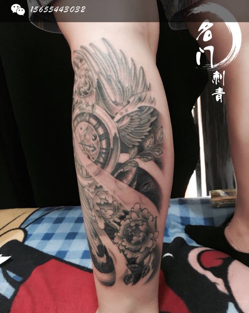 • T包小腿吹火男+阿多福纹身图片_腿部老传统新传统吹火男阿