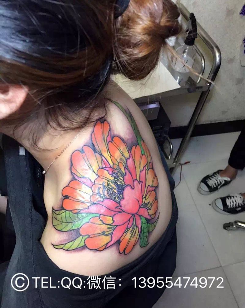 • 女性大花胸纹身_43张霸气漂亮的女性大花胸纹身图案作品