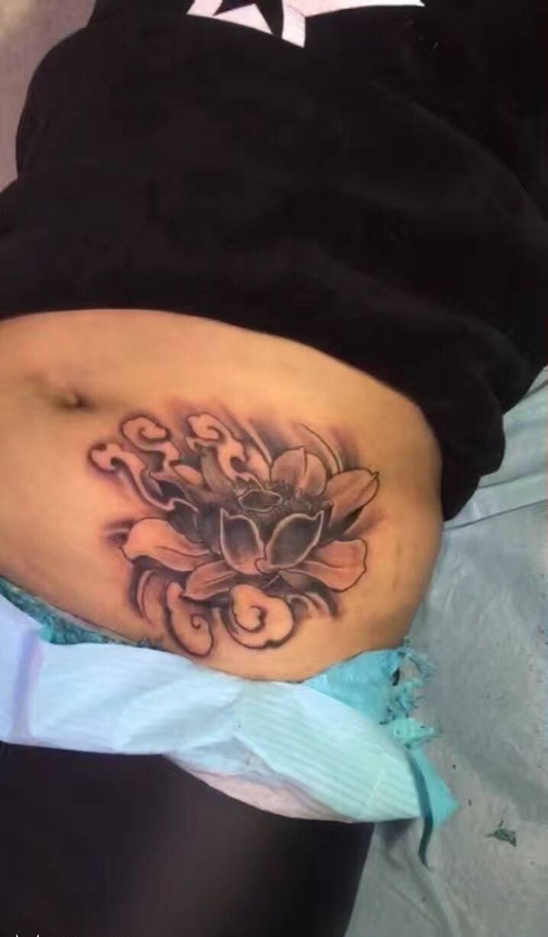 • 时尚性感的腹部莲花纹身图案