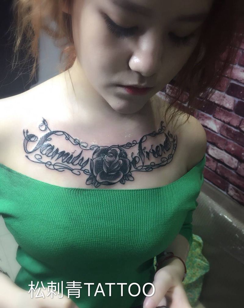 玫瑰哥特乐英文纹身图片
