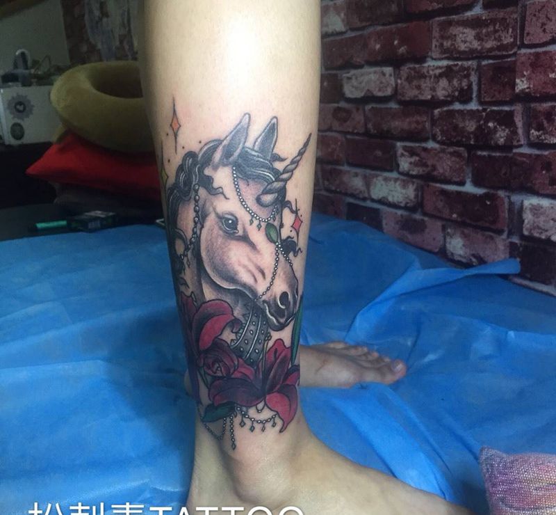 • T网红王老大花腿龙纹身图片_腿部新传统纹身图案