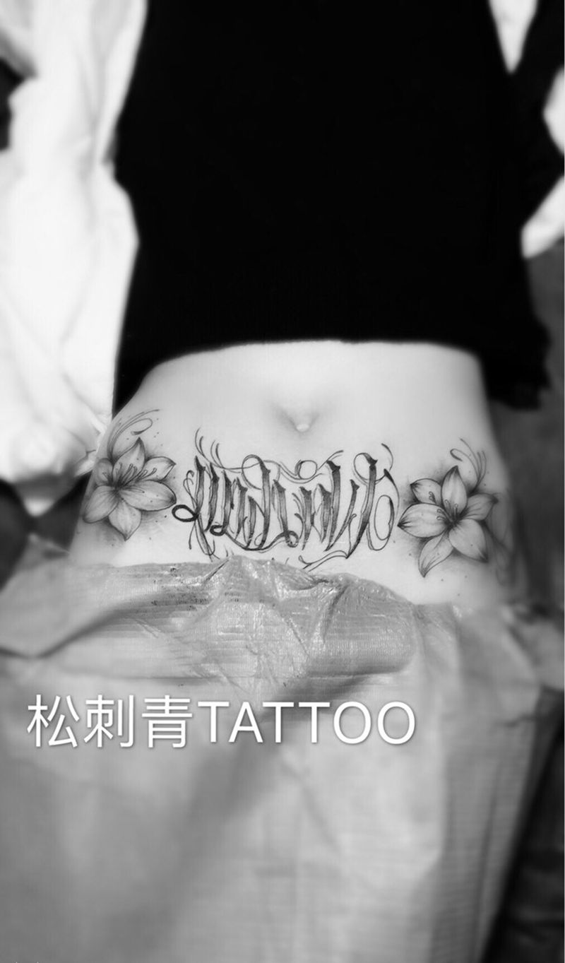 • T关于私处得爱!纹身图片_成品腹部清新字符图腾纹身图案
