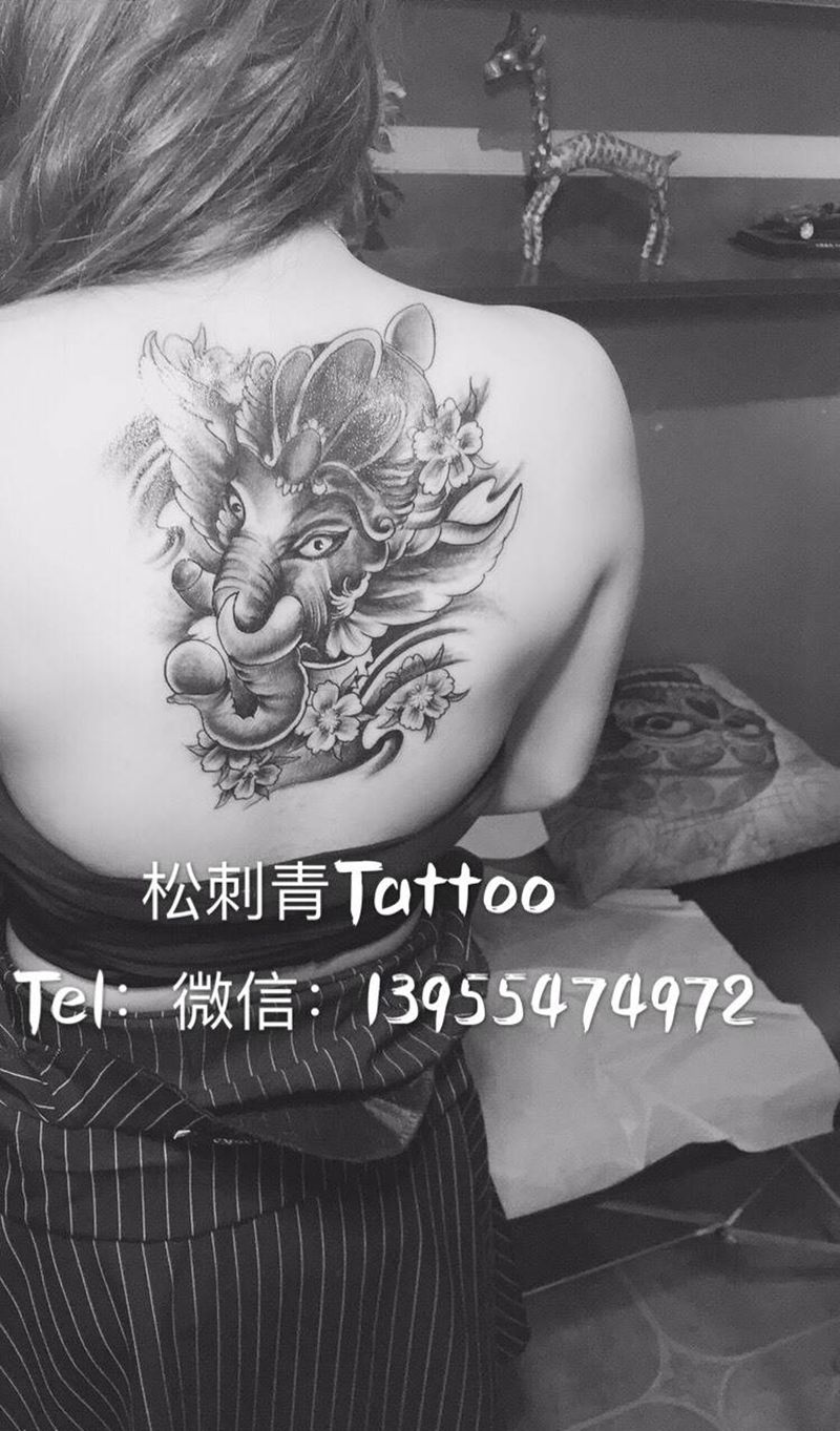 当前位置: 首页 >安徽省淮南市纹身店-松刺青纹身图案>象神遮盖纹身图片