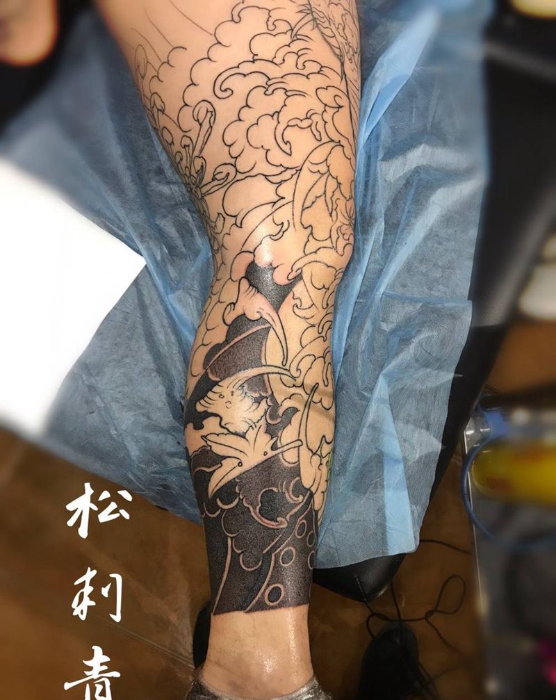 当前位置: 首页 >安徽省淮南市纹身店-松刺青纹身图案>包腿龙纹身图片