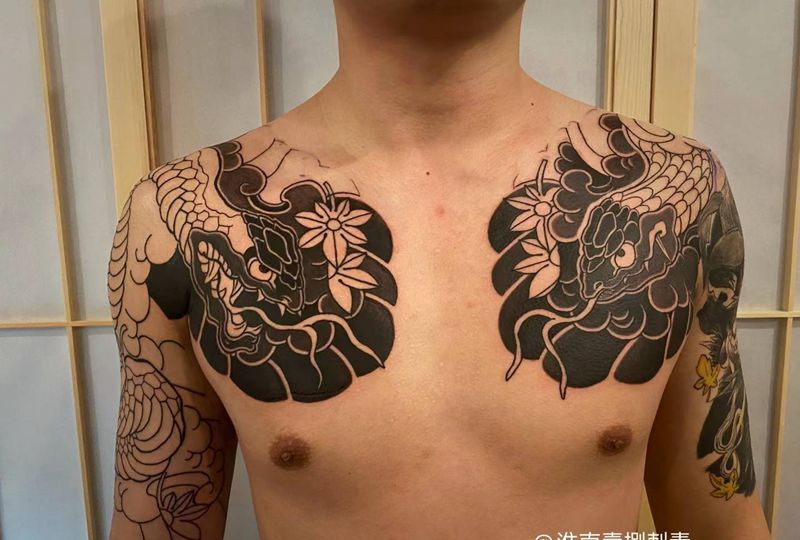 蛇 胸胛纹身图片_胸部纹身图案