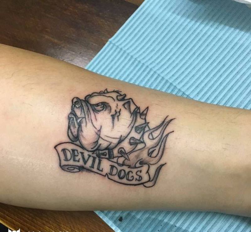 地狱犬纹身图片_手臂欧美动物成品纹身图案