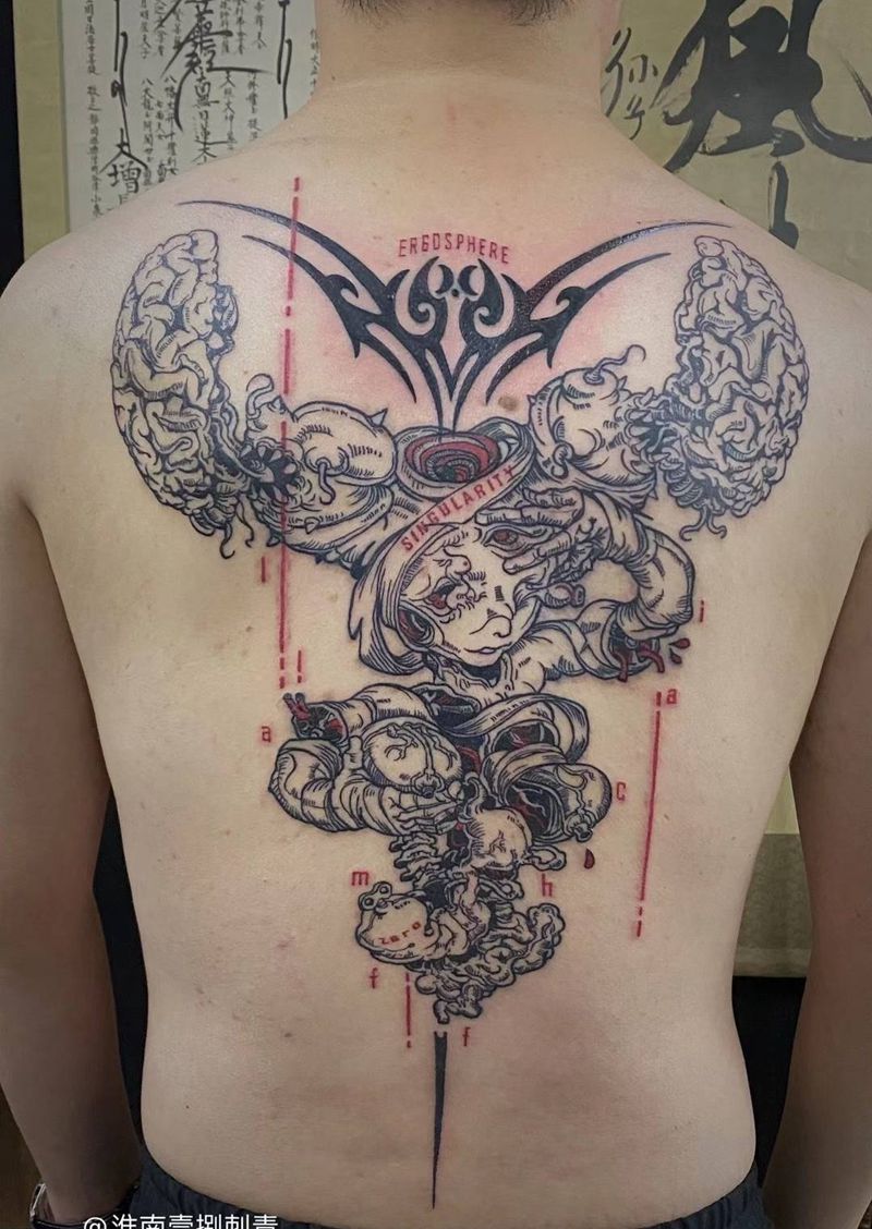 客人自己设计纹身稿,我们来完成纹身图片_背部欧美写实纹身图案