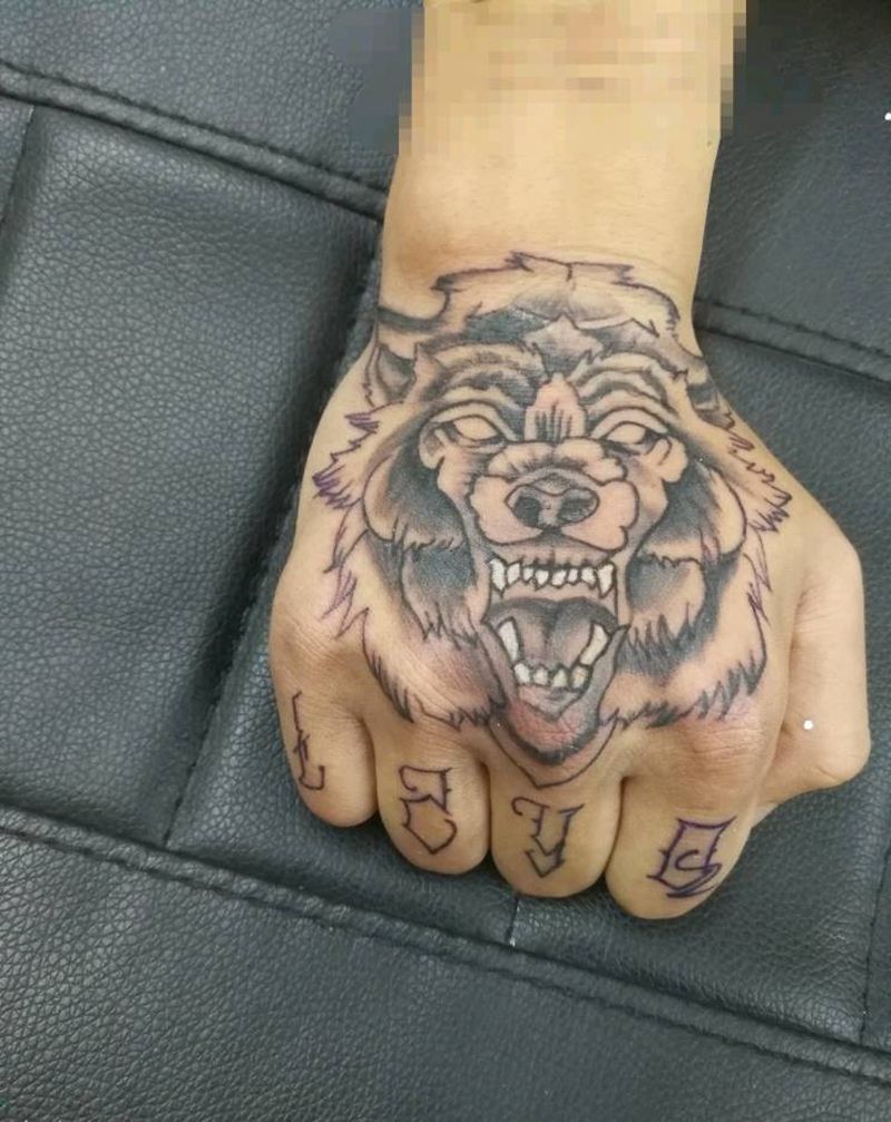 当前位置: 首页 >安徽省淮南市纹身店-壹捌刺青纹身图案>手背狼头纹身图片