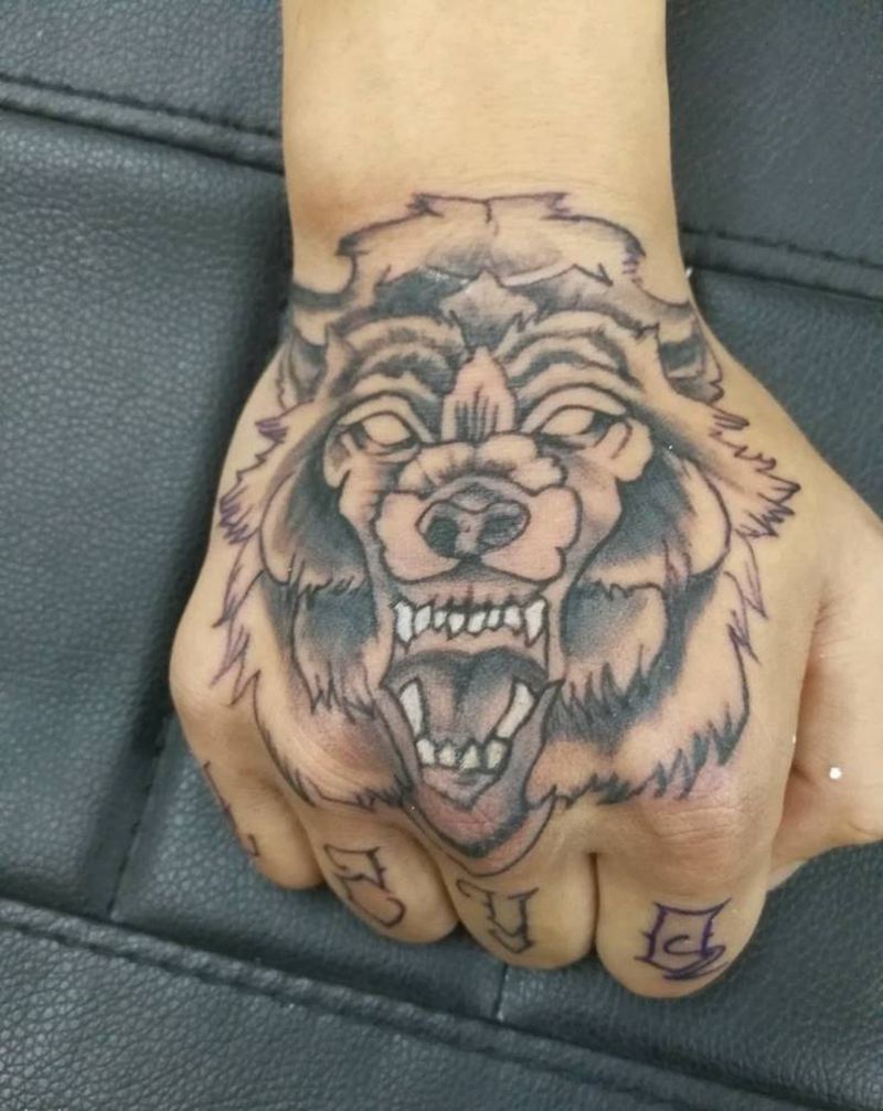 当前位置: 首页 >安徽省淮南市纹身店-壹捌刺青纹身图案>手背狼头纹身图片