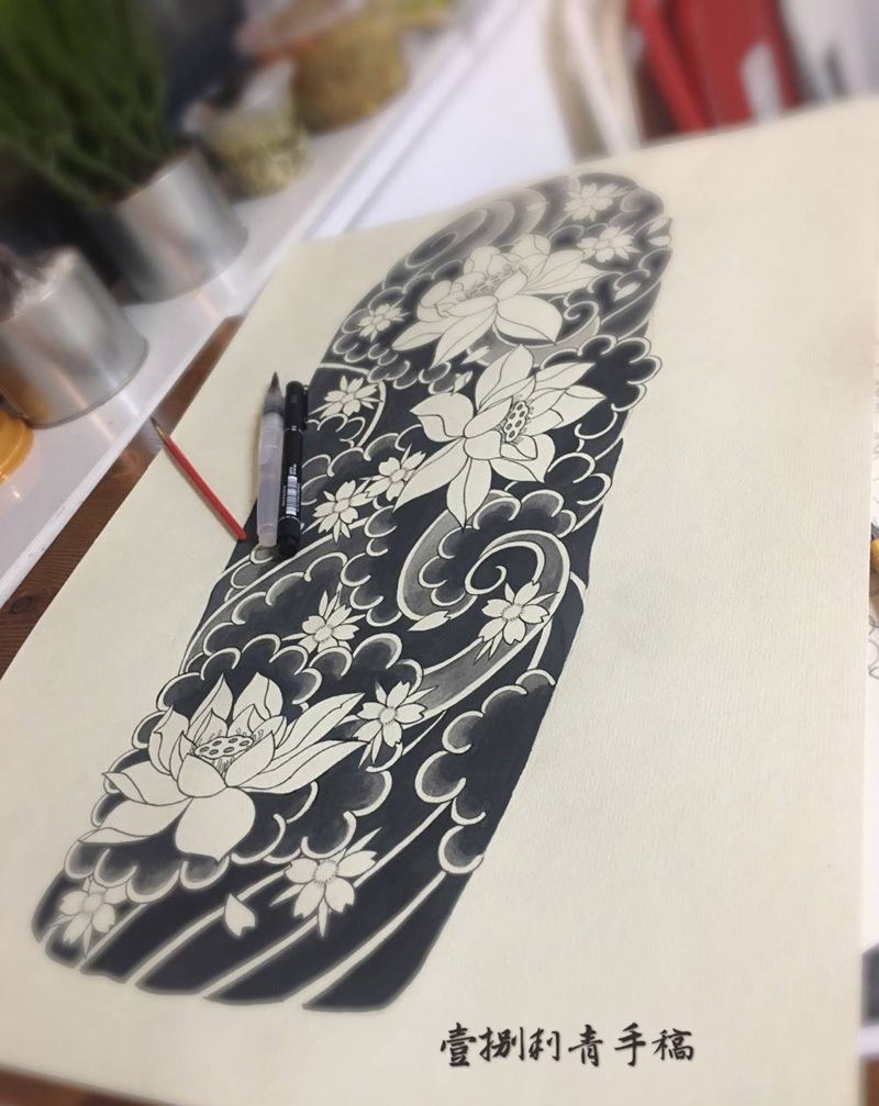 一组15张莲花纹身手