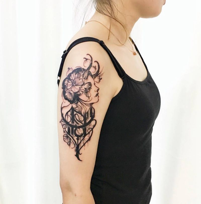 • 纹身吧推荐的披肩图腾半胛纹身图案作品展示