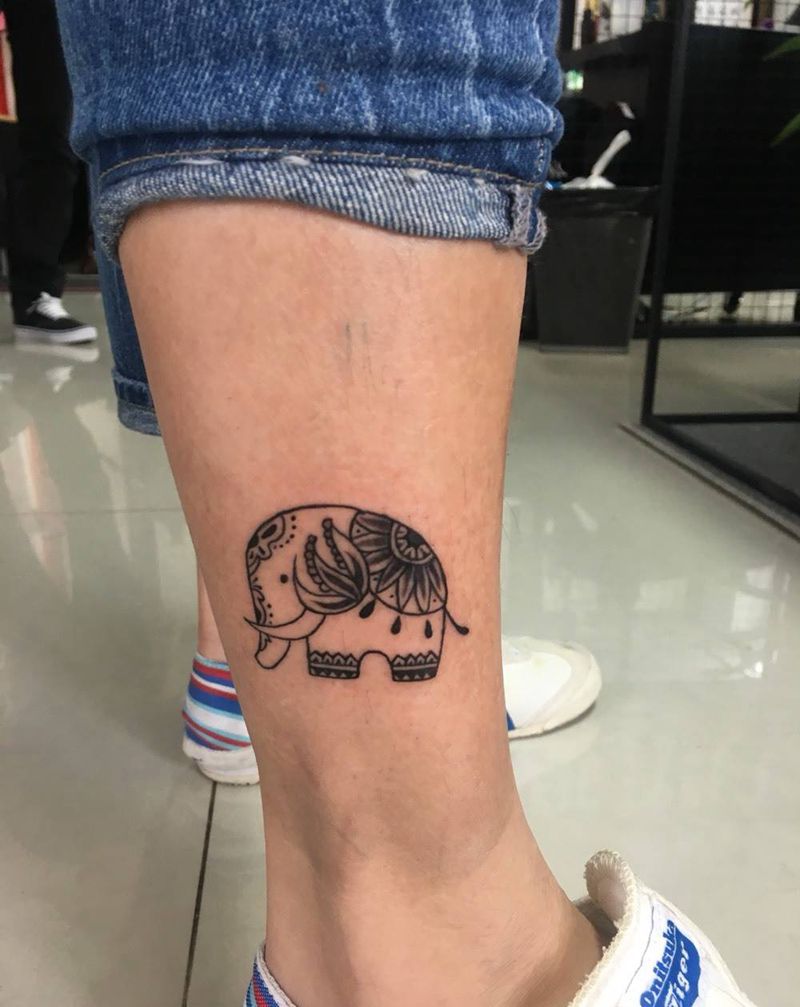 脚踝小象纹身纹身图片_成品腿部清新动物纹身图案