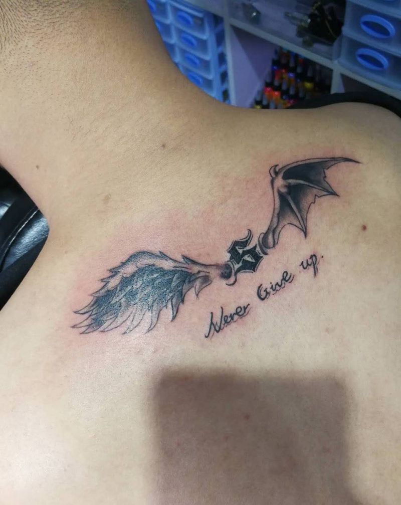 当前位置: 首页 >安徽省淮南市纹身店-壹捌刺青纹身图案>天使恶魔翅膀纹身图片