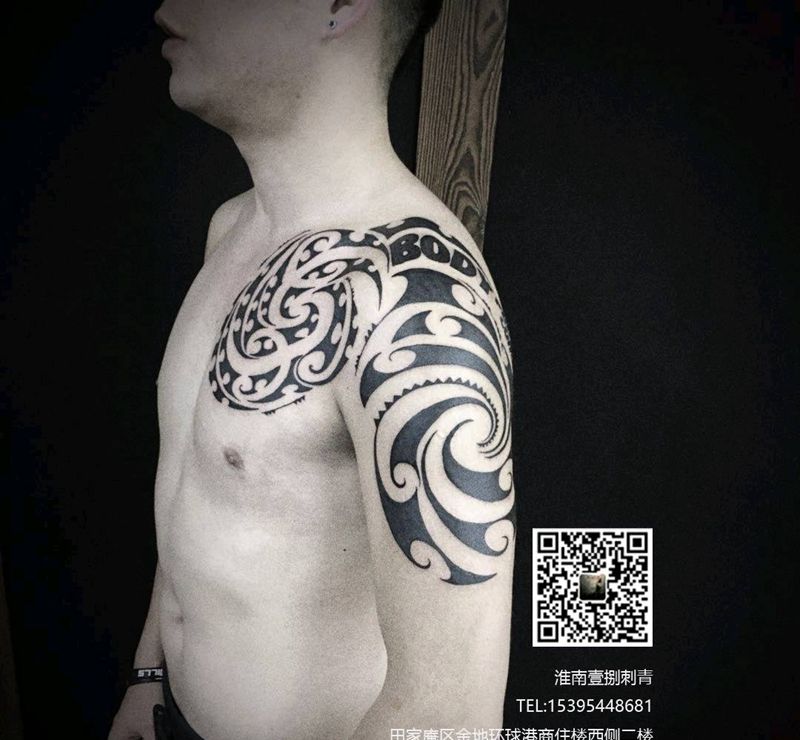 • 纹身吧推荐的披肩图腾半胛纹身图案作品展示