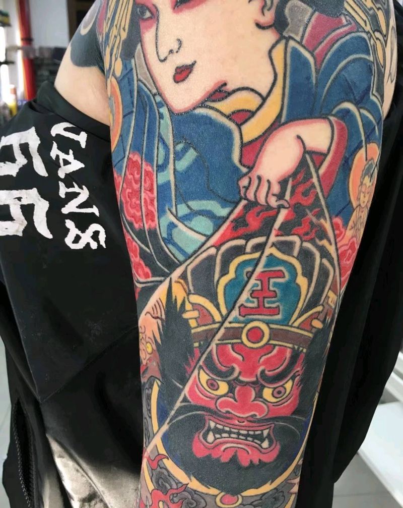 地狱太夫纹身图片_手臂老传统纹身图案