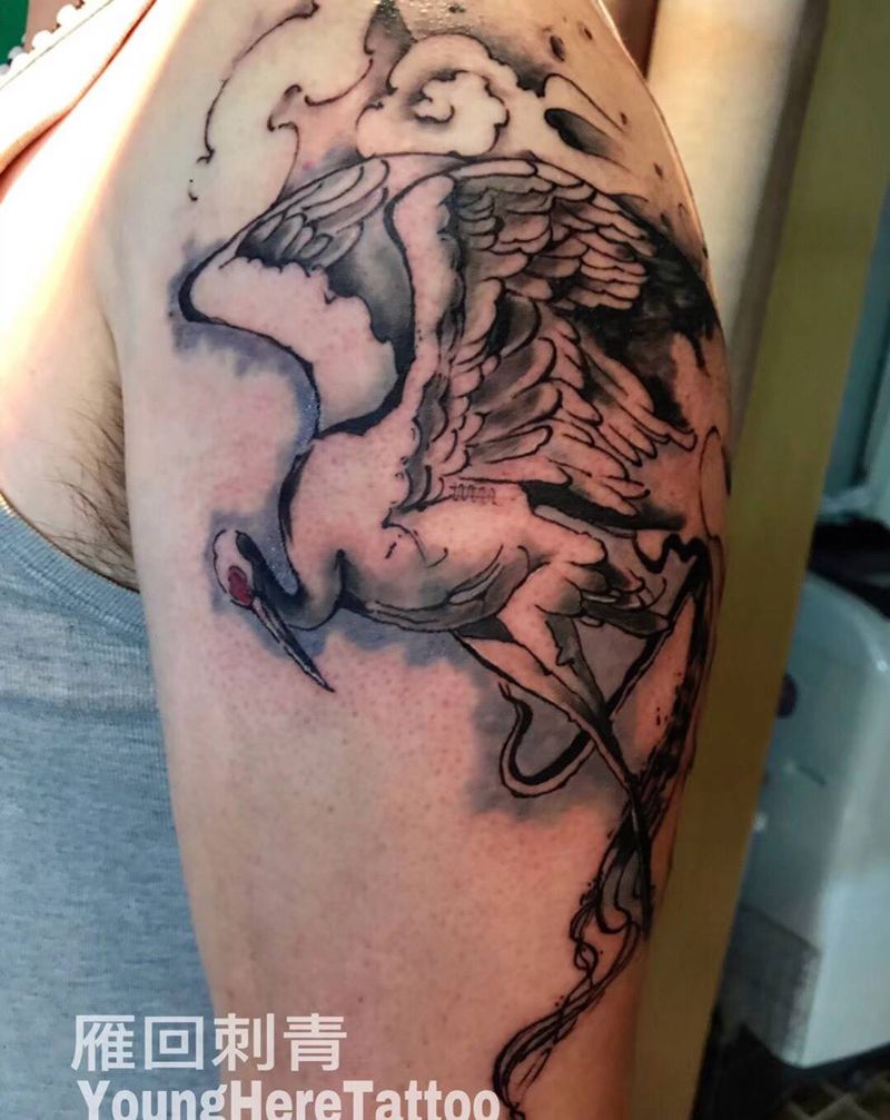 水墨风格-鹤纹身图片