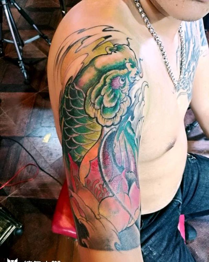 当前位置: 首页 >安徽省淮南市纹身店-淮南永刺青纹身图案>大臂遮盖鲤鱼~纹身图片