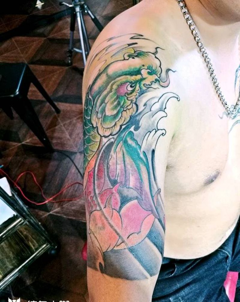大臂遮盖鲤鱼~纹身图片