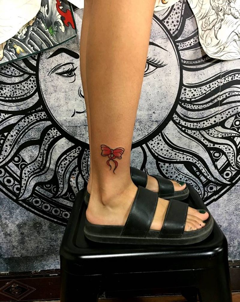 美女的脚腕蝴蝶结纹身图片_脚部纹身图案