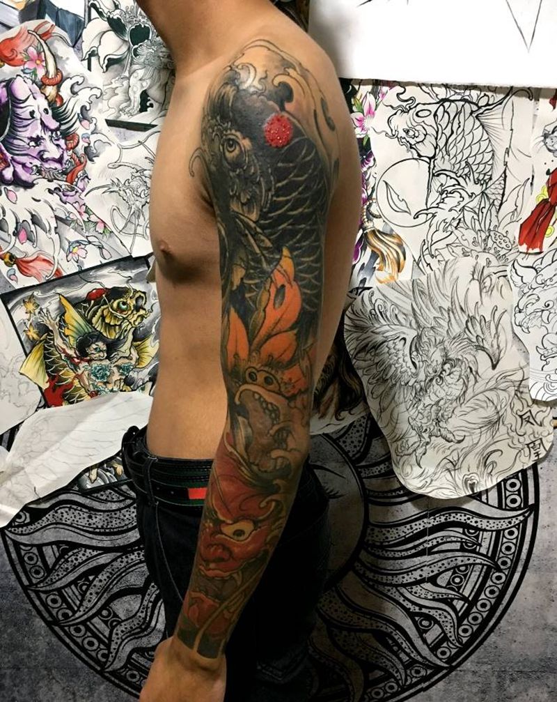 当前位置: 首页 >安徽省淮南市纹身店-淮南永刺青纹身图案>帅哥的遮盖老纹身花臂,今日完工纹身图片