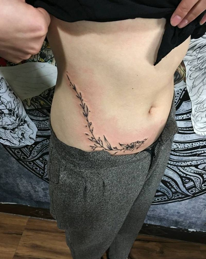 • T关于私处得爱!纹身图片_成品腹部清新字符图腾纹身图案